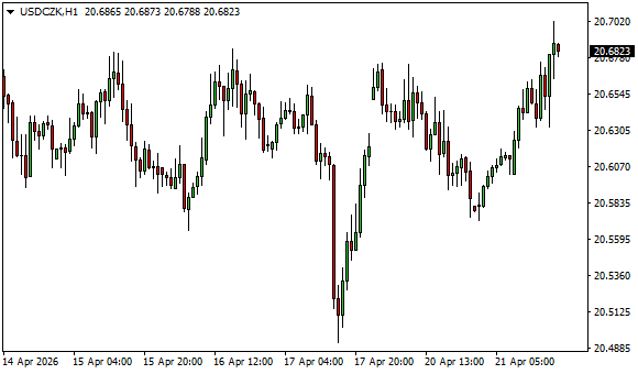 Vývoj měnového páru USD/CZK (1hodinový graf - H1):