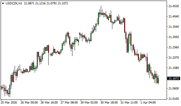 Vývoj měnového páru USD/CZK (1hodinový graf - H1):