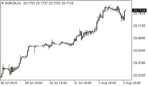 Vývoj měnového páru EUR/CZK (1hodinový graf - H1):