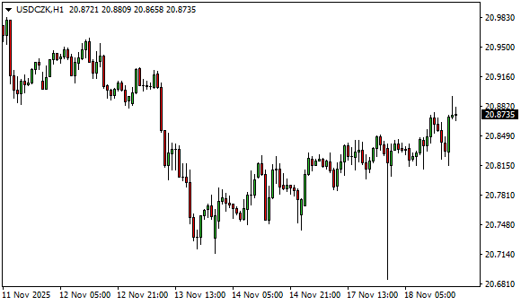 Vývoj měnového páru USD/CZK (1hodinový graf - H1):