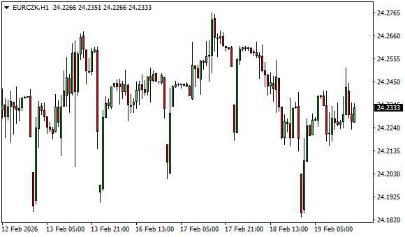 Vývoj měnového páru EUR/CZK (1hodinový graf - H1):