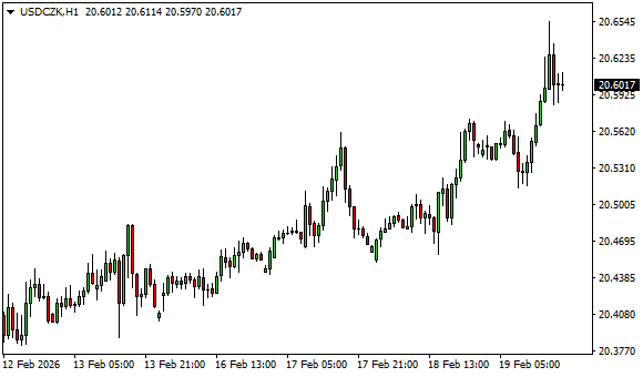 Vývoj měnového páru USD/CZK (1hodinový graf - H1):