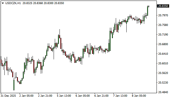 Vývoj měnového páru USD/CZK (1hodinový graf - H1):