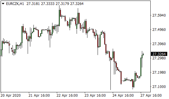 Vývoj měnového páru EUR/CZK (1hodinový graf - H1):
