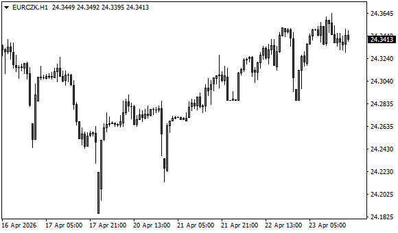 Vývoj měnového páru EUR/CZK (1hodinový graf - H1):