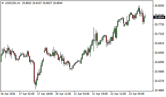 Vývoj měnového páru USD/CZK (1hodinový graf - H1):