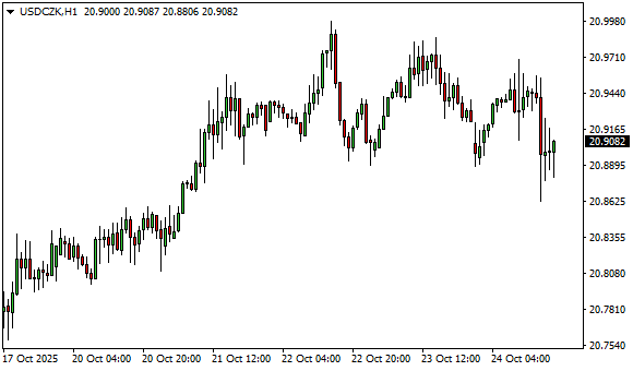 Vývoj měnového páru USD/CZK (1hodinový graf - H1):