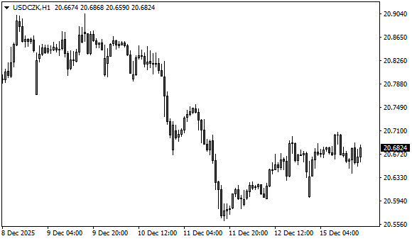 Vývoj měnového páru USD/CZK (1hodinový graf - H1):