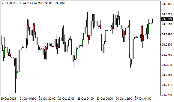 Vývoj měnového páru EUR/CZK (1hodinový graf - H1):