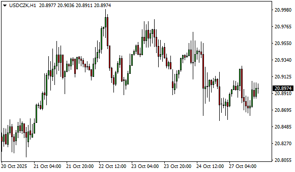 Vývoj měnového páru USD/CZK (1hodinový graf - H1):