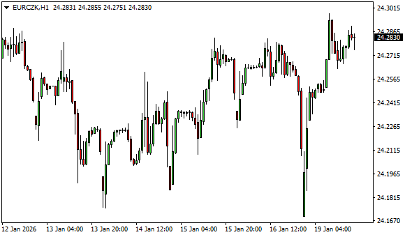 Vývoj měnového páru EUR/CZK (1hodinový graf - H1):