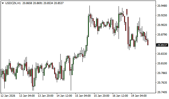 Vývoj měnového páru USD/CZK (1hodinový graf - H1):