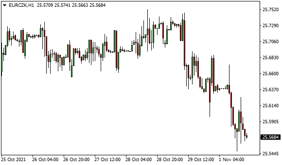 Vývoj měnového páru EUR/CZK (1hodinový graf - H1):