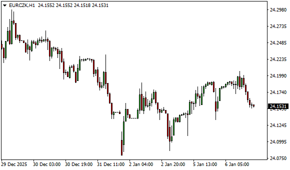 Vývoj měnového páru EUR/CZK (1hodinový graf - H1):
