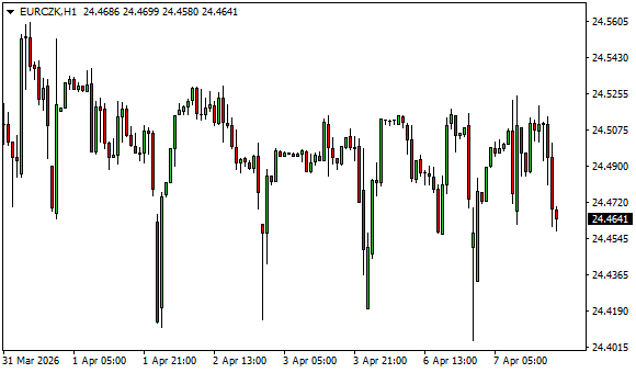 Vývoj měnového páru EUR/CZK (1hodinový graf - H1):