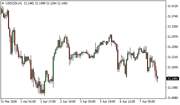 Vývoj měnového páru USD/CZK (1hodinový graf - H1):