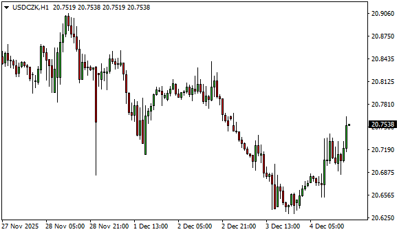 Vývoj měnového páru USD/CZK (1hodinový graf - H1):