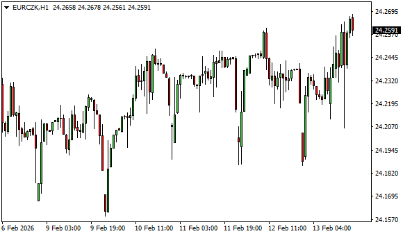 Vývoj měnového páru EUR/CZK (1hodinový graf - H1):