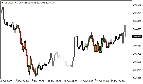 Vývoj měnového páru USD/CZK (1hodinový graf - H1):