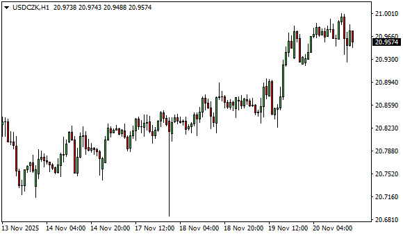 Vývoj měnového páru USD/CZK (1hodinový graf - H1):