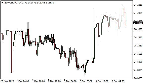 Vývoj měnového páru EUR/CZK (1hodinový graf - H1):