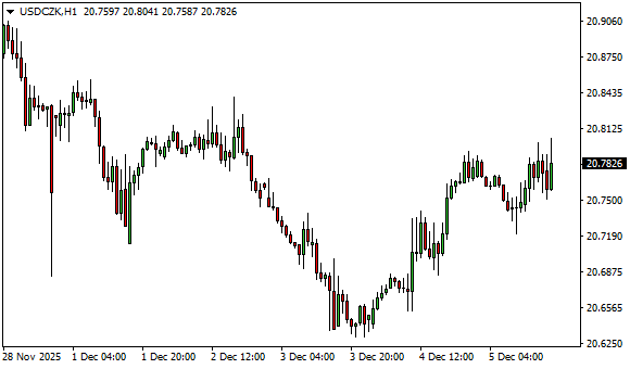 Vývoj měnového páru USD/CZK (1hodinový graf - H1):