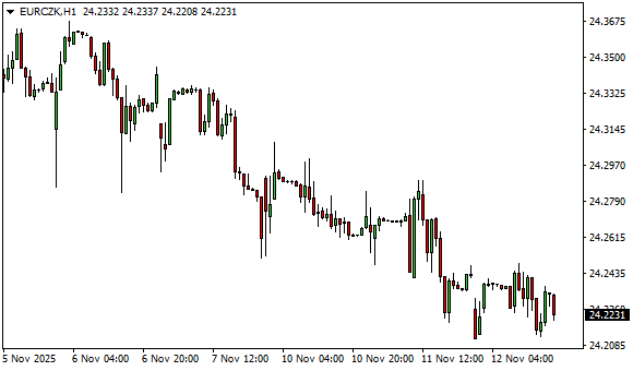 Vývoj měnového páru EUR/CZK (1hodinový graf - H1):