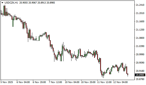 Vývoj měnového páru USD/CZK (1hodinový graf - H1):