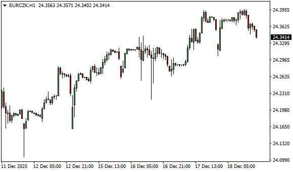 Vývoj měnového páru EUR/CZK (1hodinový graf - H1):