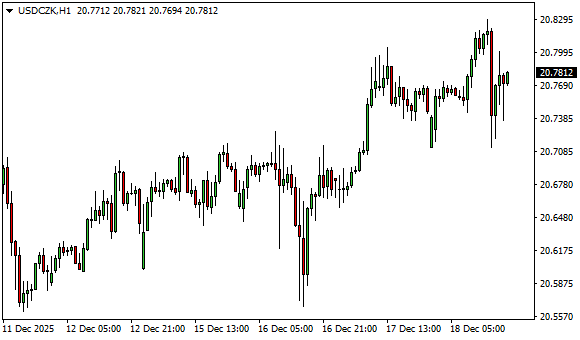 Vývoj měnového páru USD/CZK (1hodinový graf - H1):