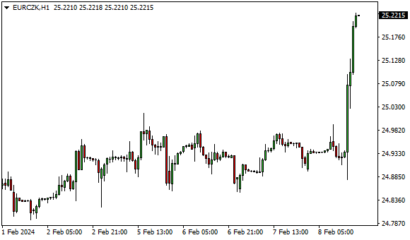 Vývoj měnového páru EUR/CZK (1hodinový graf - H1):