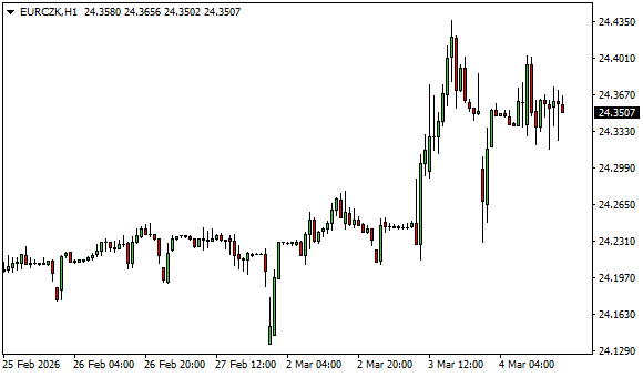 Vývoj měnového páru EUR/CZK (1hodinový graf - H1):