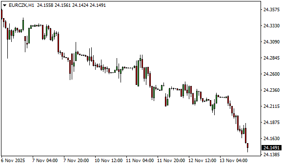 Vývoj měnového páru EUR/CZK (1hodinový graf - H1):