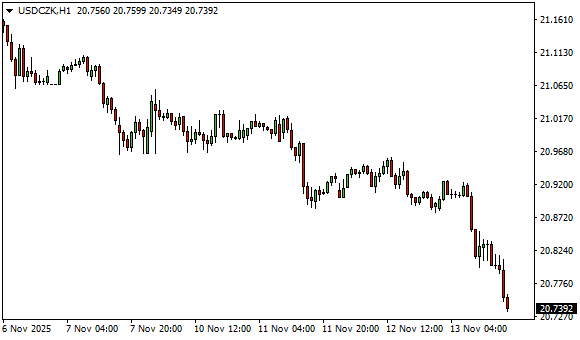 Vývoj měnového páru USD/CZK (1hodinový graf - H1):