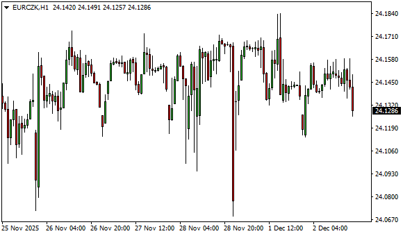 Vývoj měnového páru EUR/CZK (1hodinový graf - H1):