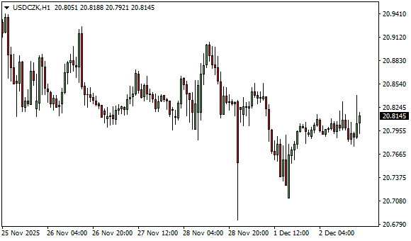 Vývoj měnového páru USD/CZK (1hodinový graf - H1):