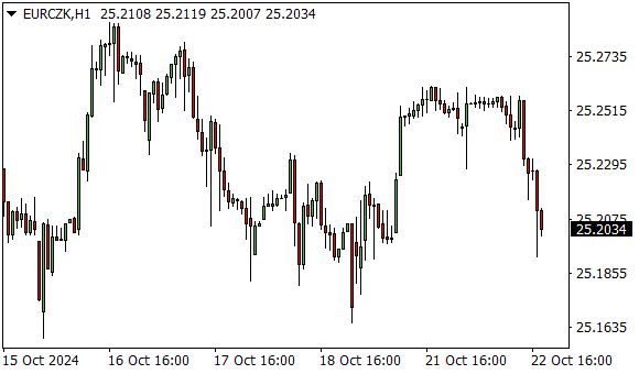 Vývoj měnového páru EUR/CZK (1hodinový graf - H1):
