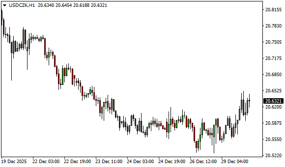Vývoj měnového páru USD/CZK (1hodinový graf - H1):