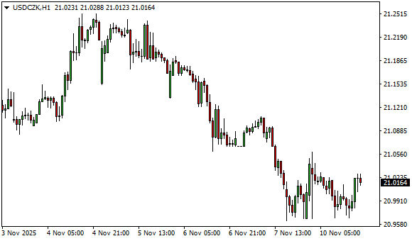 Vývoj měnového páru USD/CZK (1hodinový graf - H1):