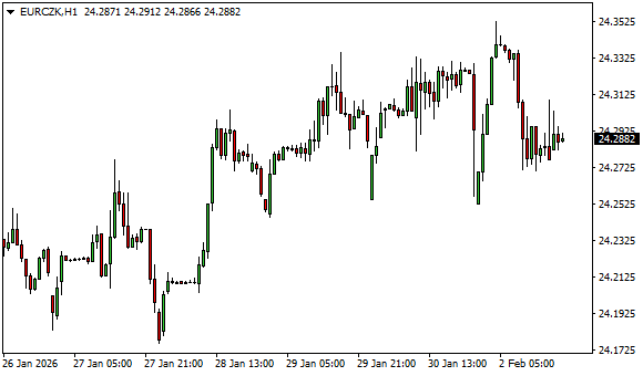 Vývoj měnového páru EUR/CZK (1hodinový graf - H1):