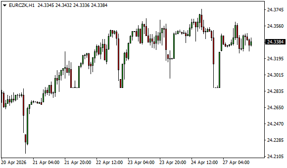 Vývoj měnového páru EUR/CZK (1hodinový graf - H1):