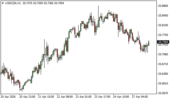 Vývoj měnového páru USD/CZK (1hodinový graf - H1):
