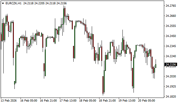 Vývoj měnového páru EUR/CZK (1hodinový graf - H1):