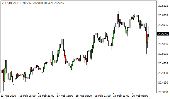 Vývoj měnového páru USD/CZK (1hodinový graf - H1):