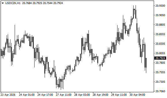 Vývoj měnového páru USD/CZK (1hodinový graf - H1):