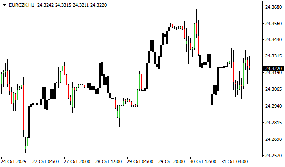 Vývoj měnového páru EUR/CZK (1hodinový graf - H1):