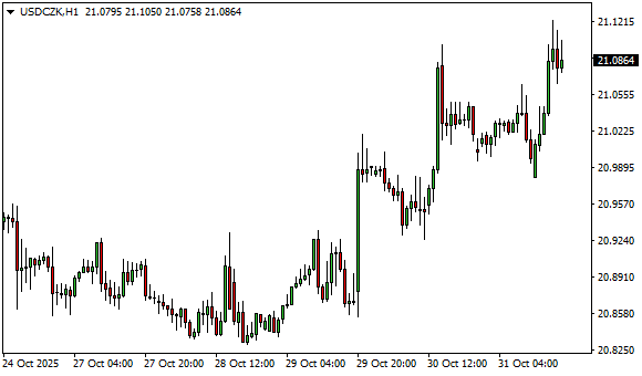 Vývoj měnového páru USD/CZK (1hodinový graf - H1):