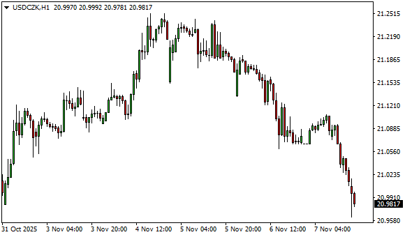 Vývoj měnového páru USD/CZK (1hodinový graf - H1):