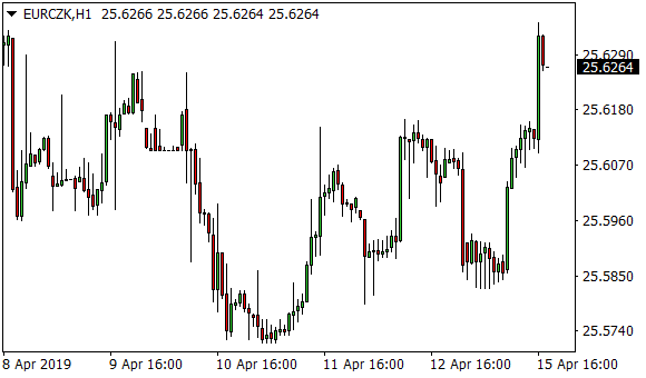 Vývoj měnového páru EUR/CZK (1hodinový graf - H1):