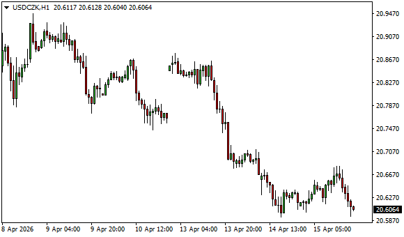 Vývoj měnového páru USD/CZK (1hodinový graf - H1):